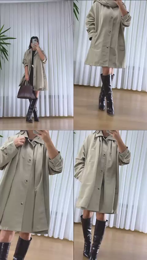 Haki Trençkot Orijinal - Klasik Astarlı Bayan Manto