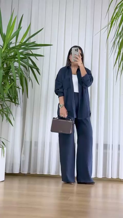 Lacivert Modal Takım - Premium Gömlek Pantolon İkili Set
