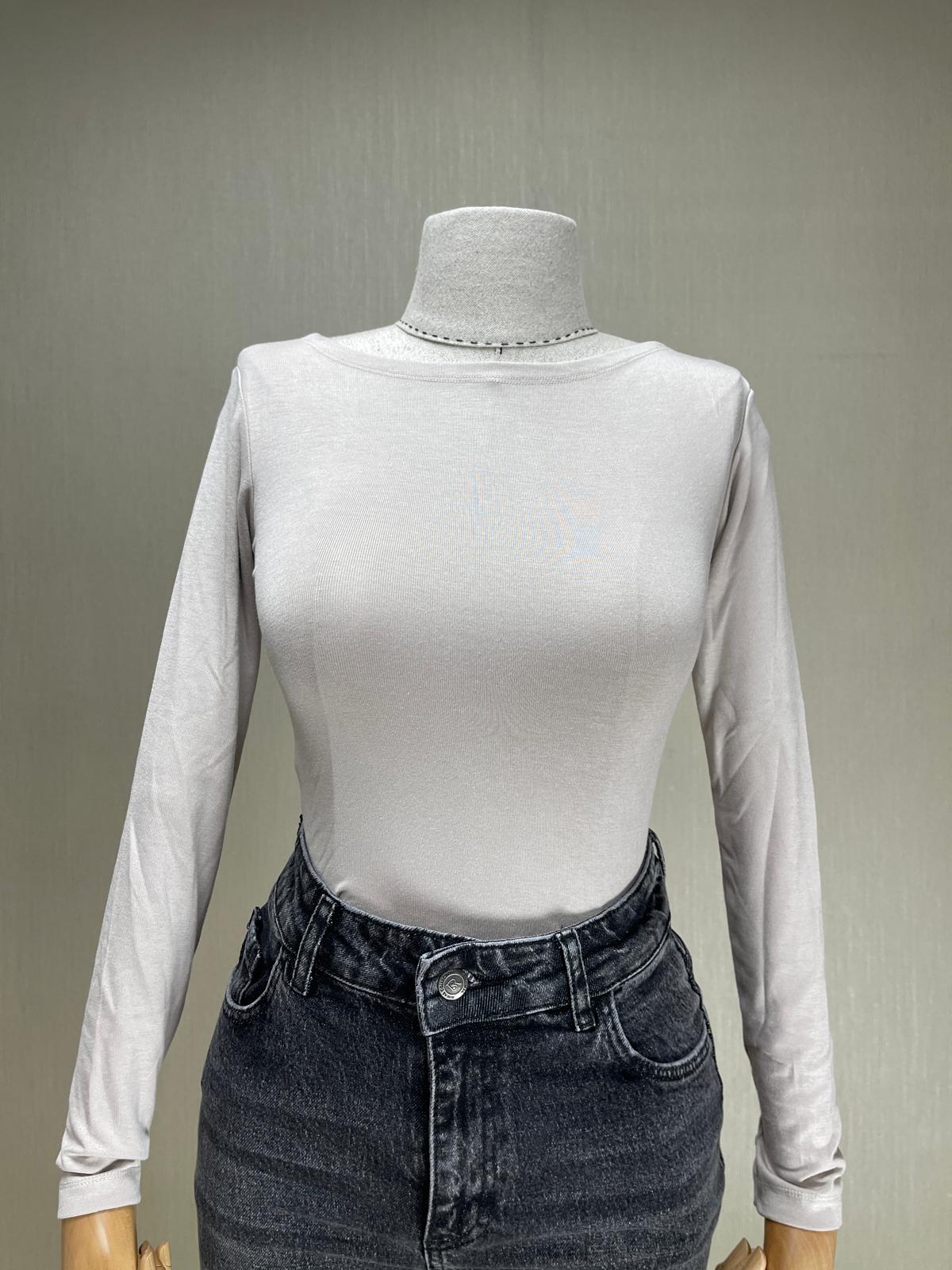 Krem Rengi Kayık Yaka Basic Body - Uzun Kol