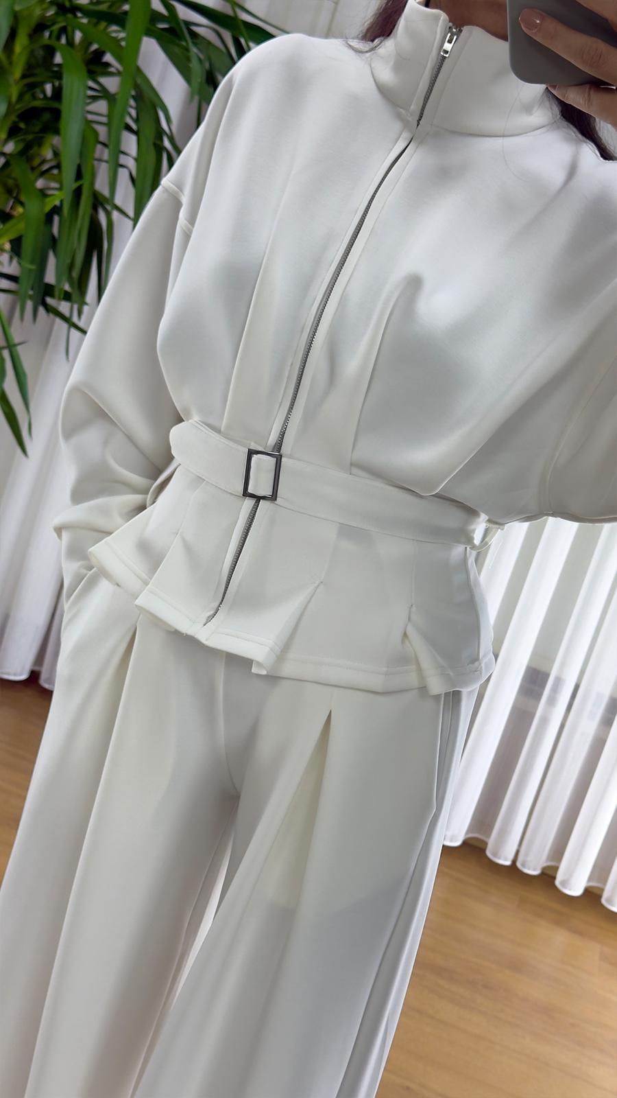 Beyaz Modal Takım - Premium Fermuarlı Eşofman Set
