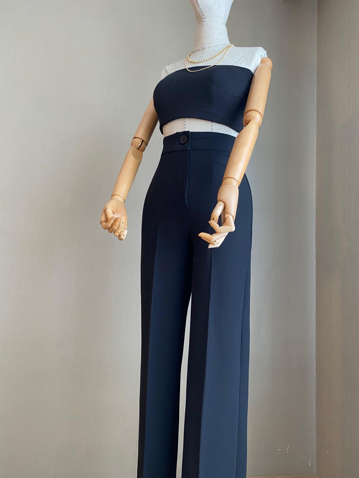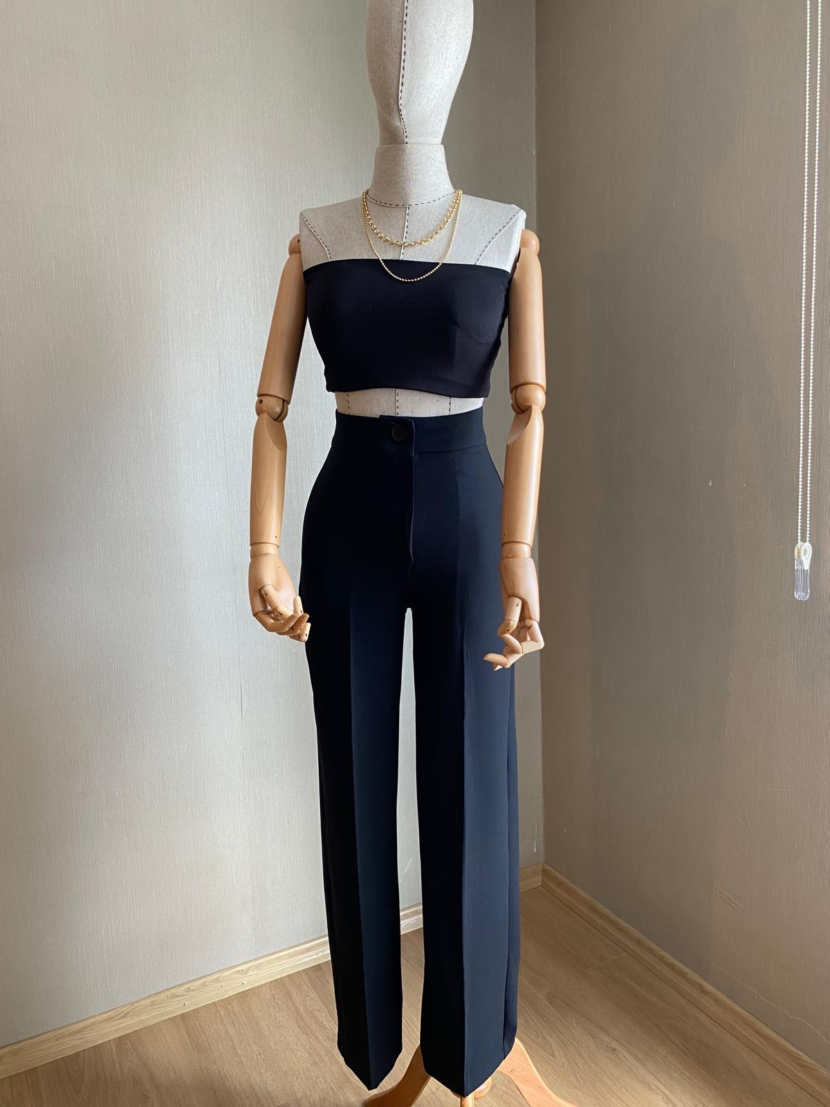 Sıcak yaz günlerinde bile şıklığınızdan ödün vermeyin! Bu trend set, siyah straplez crop top.