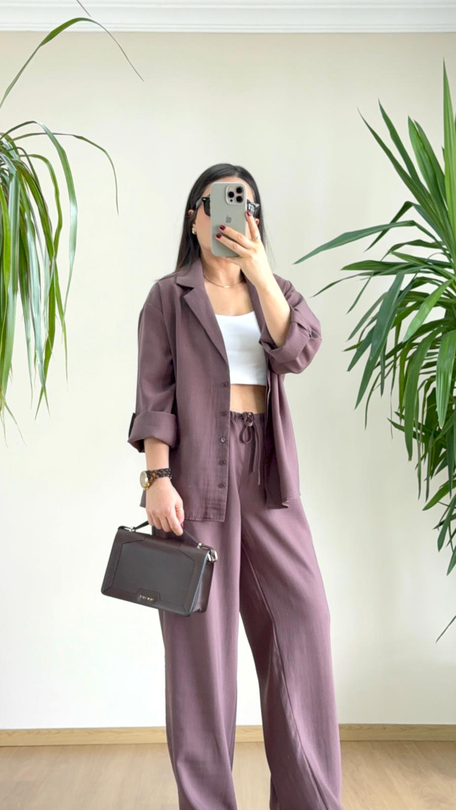 Trendlerden bağımsız, zamansız bir stil anlayışını yansıtan bu kahverengi Tensel takım; modern kadının sade ama etkileyici duruşunu en iyi şekilde ortaya koyar. Günlük hayatın temposunda stilinden ödün vermek istemeyenler için tasarlanan bu parça, güçlü, doğal ve zahmetsiz şıklığın anahtarıdır.