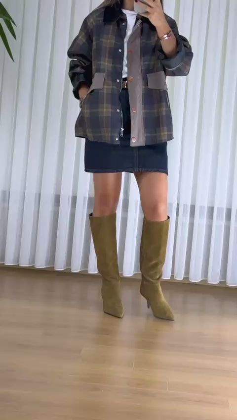 Bu retro modern mont ile gardırobunuza hem nostalji hem de trend bir hava katın. Ekose desenin zamansız cazibesi ve kadife yaka lüksü ile sonbaharın en şık parçasına sahip olun!