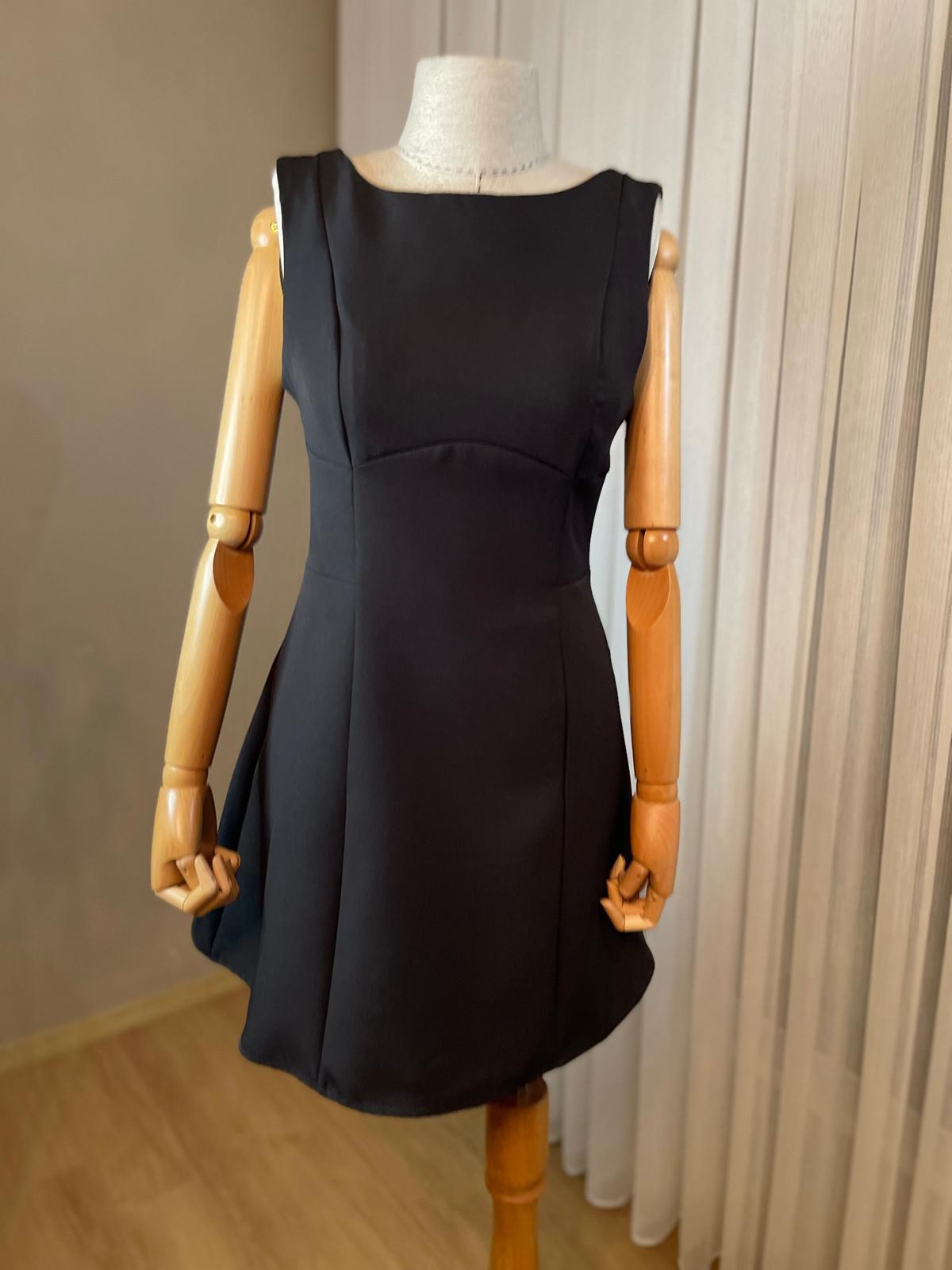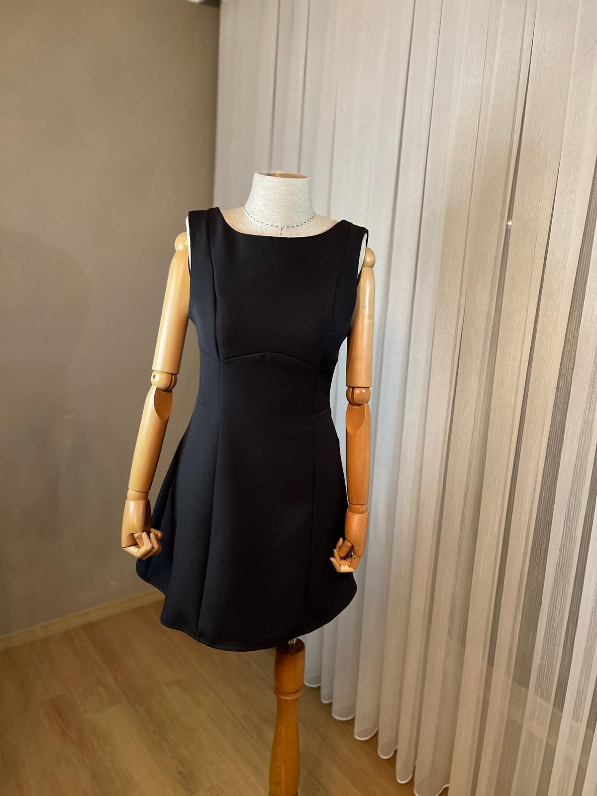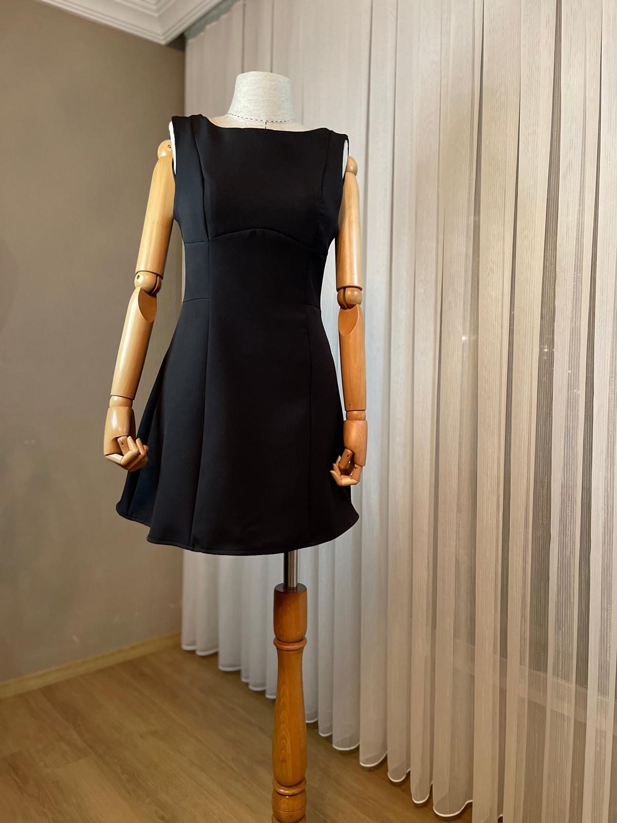 Sadeliği cesur detaylarla buluşturan siyah sıfır kol elbisemiz, sırt dekoltesiyle büyüleyici bir görünüm vadediyor! Minimal tasarımının arkasında gizlenen zarif sırt dekoltesi, her adımınızda şıklığınıza sofistike bir dokunuş katacak.