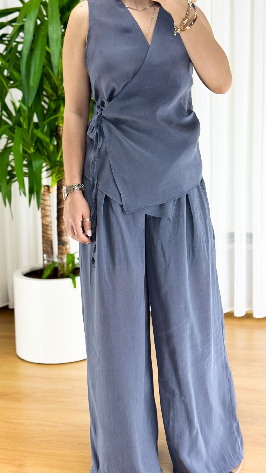 Gri Kruvaze Bluz Pantolon Takım: Minimalist Şıklığın Vazgeçilmezi