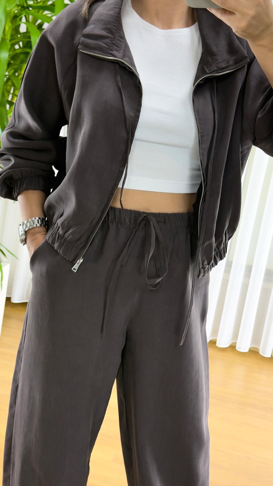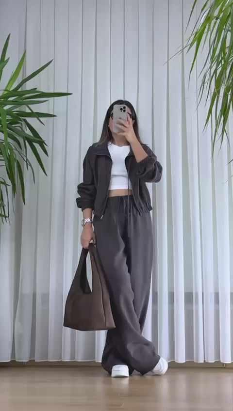 Spor şıklığı seven ve doğal tonları tercih eden kadınların vazgeçilmezi olan bu kahverengi bomber takım, konfor ve stilin buluştuğu sıcak bir parça. Hem evde hem de sokakta rahat ve trend görünmek isteyenler için ideal! Toprak tonlarının huzuru ile şıklık bir arada.
