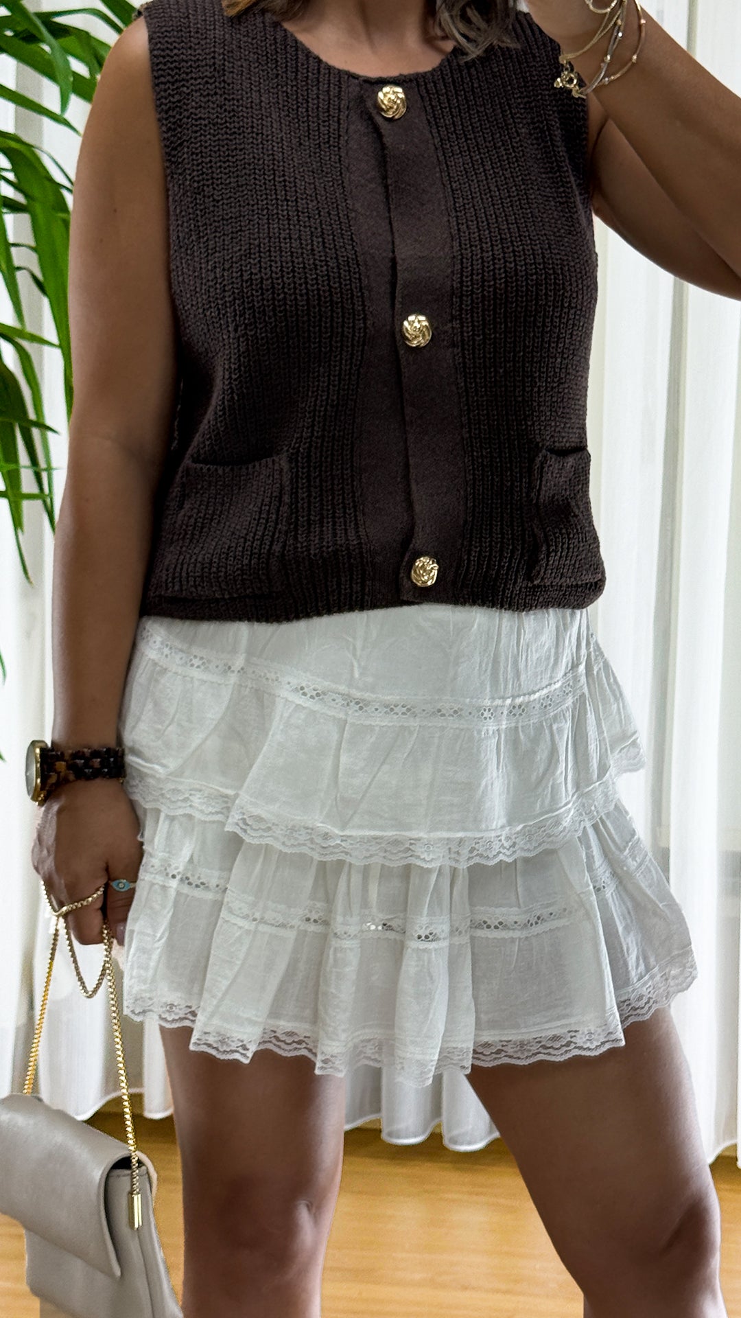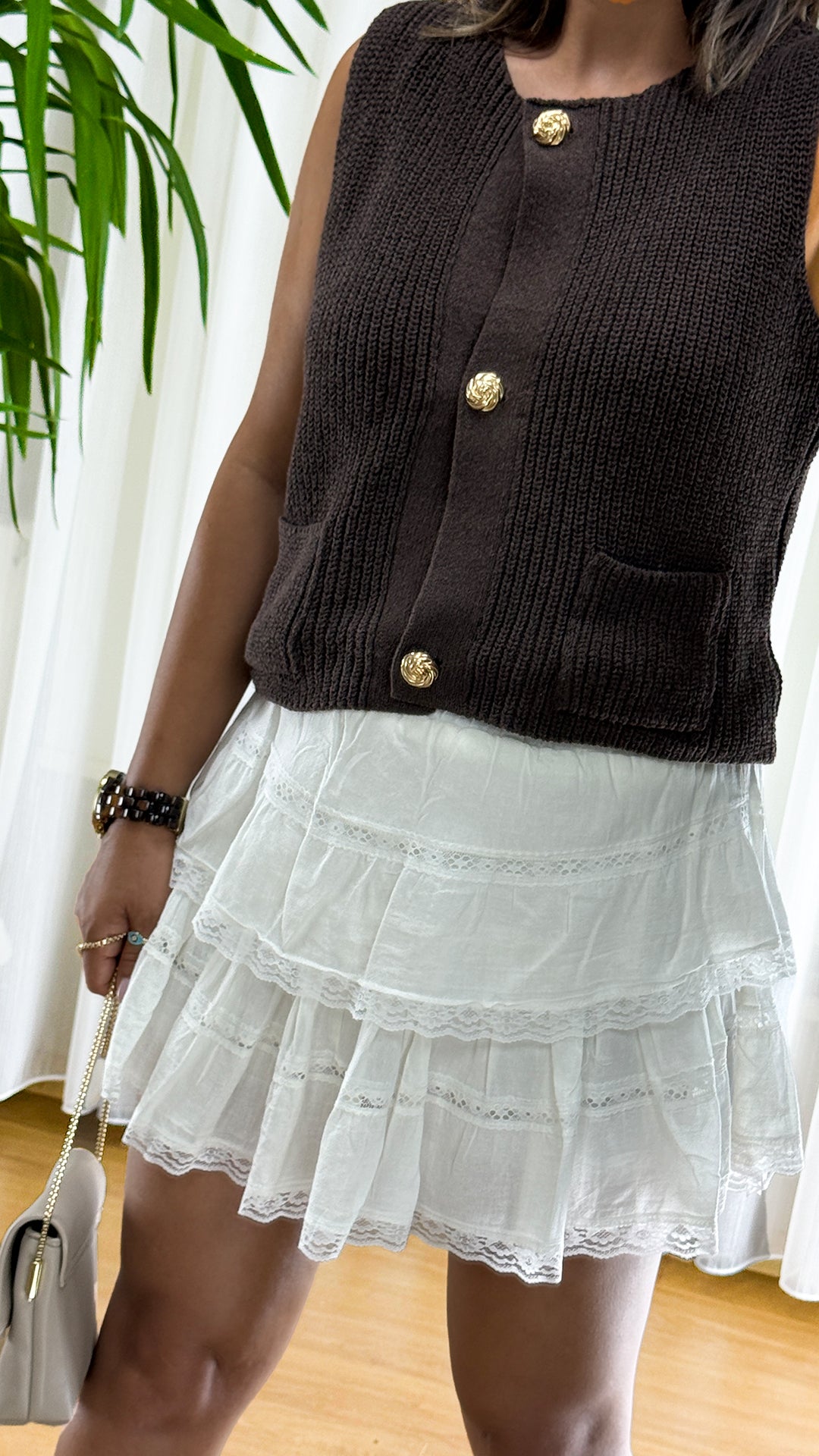 Kremin soft tonlarını dantel detaylarının romantik dokusunda buluşturan şort eteğimiz, katlı tasarımı ve delicate lace trim'leriyle bohemian femininity sunuyor! Mini boy ve tiered silhouette ile yaz gardırobunun flirty parçası.