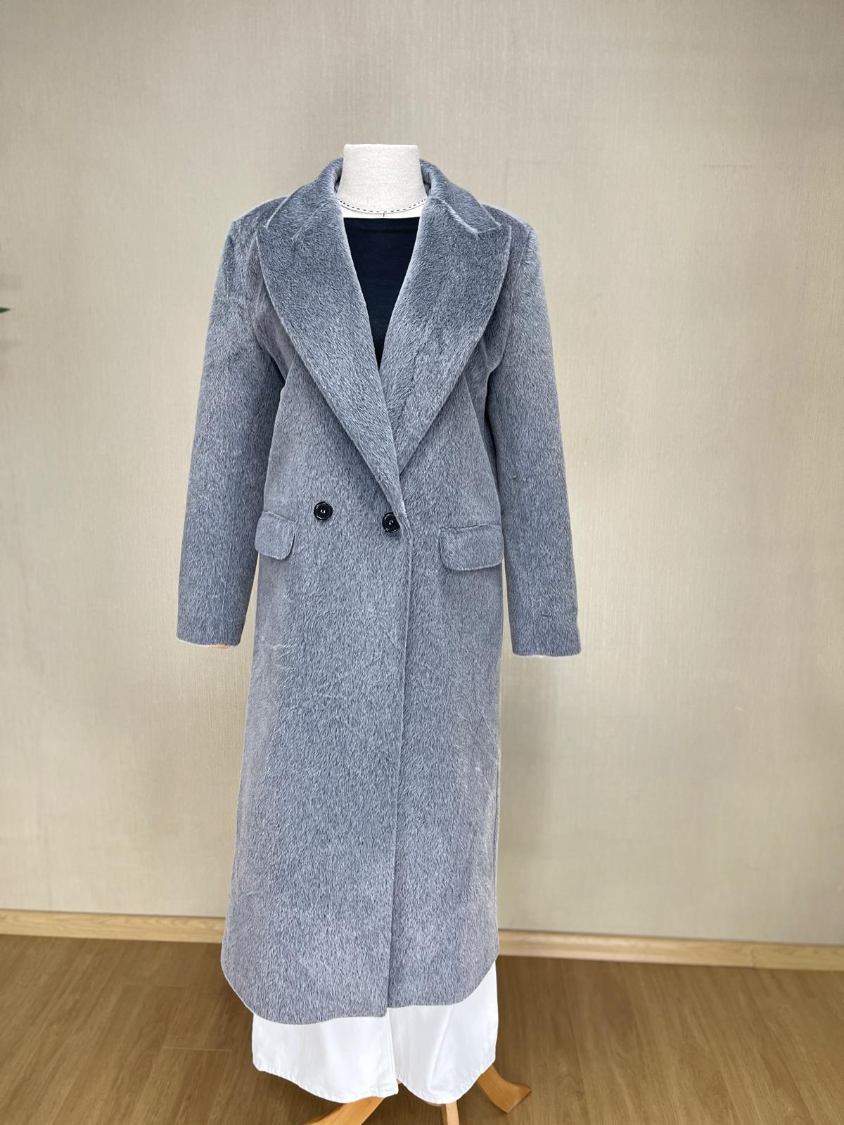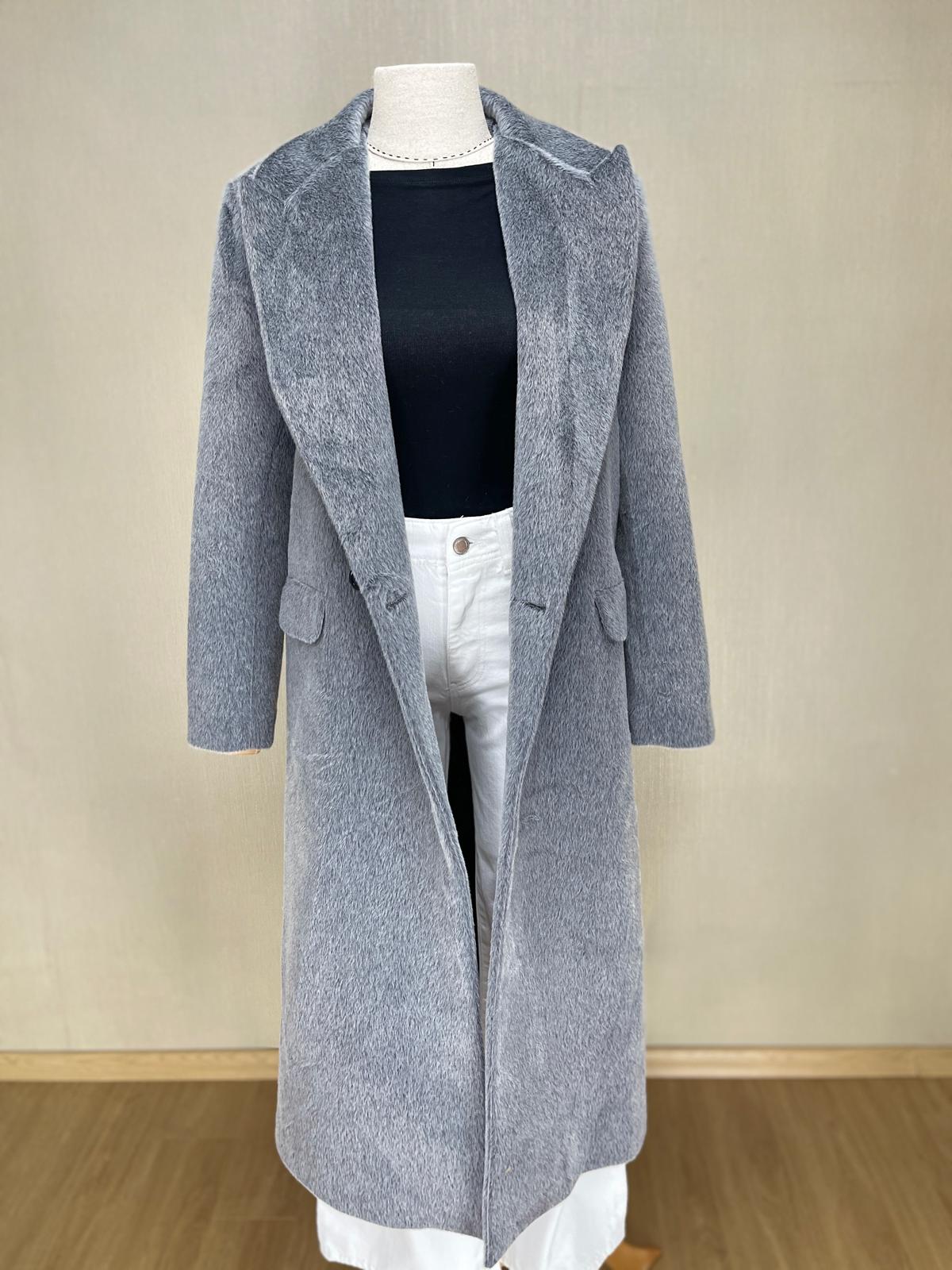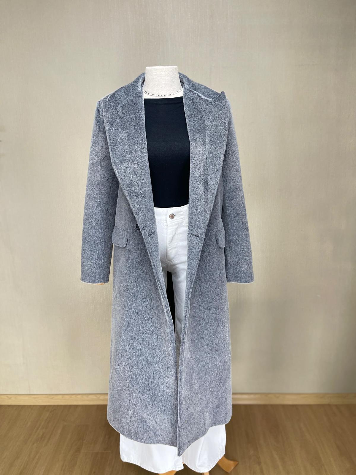Lüks ve Modern: Gri Tay Tüyü Uzun Kaban | Premium Kış Şıklığı