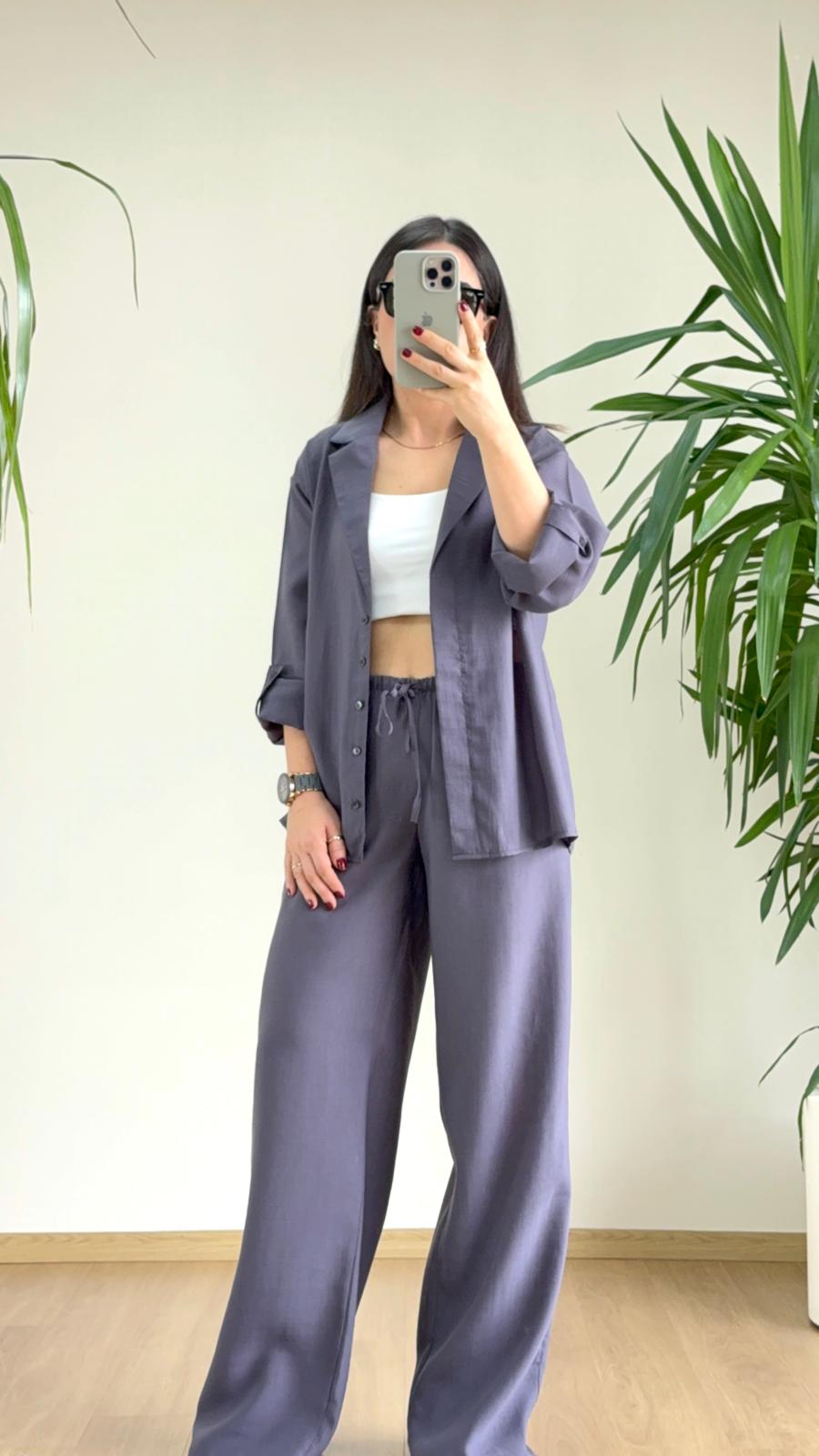 Trendlerin ötesinde, kalıcı ve güçlü bir stil sunan gri Tensel takım; sadeliğin içindeki ihtişamı keşfetmek isteyenler için vazgeçilmez bir parça. Şıklığı abartıya kaçmadan yaşamak isteyen kadınlar için tasarlanan bu kombin, her anınıza zarif bir dokunuş katmak için hazır.