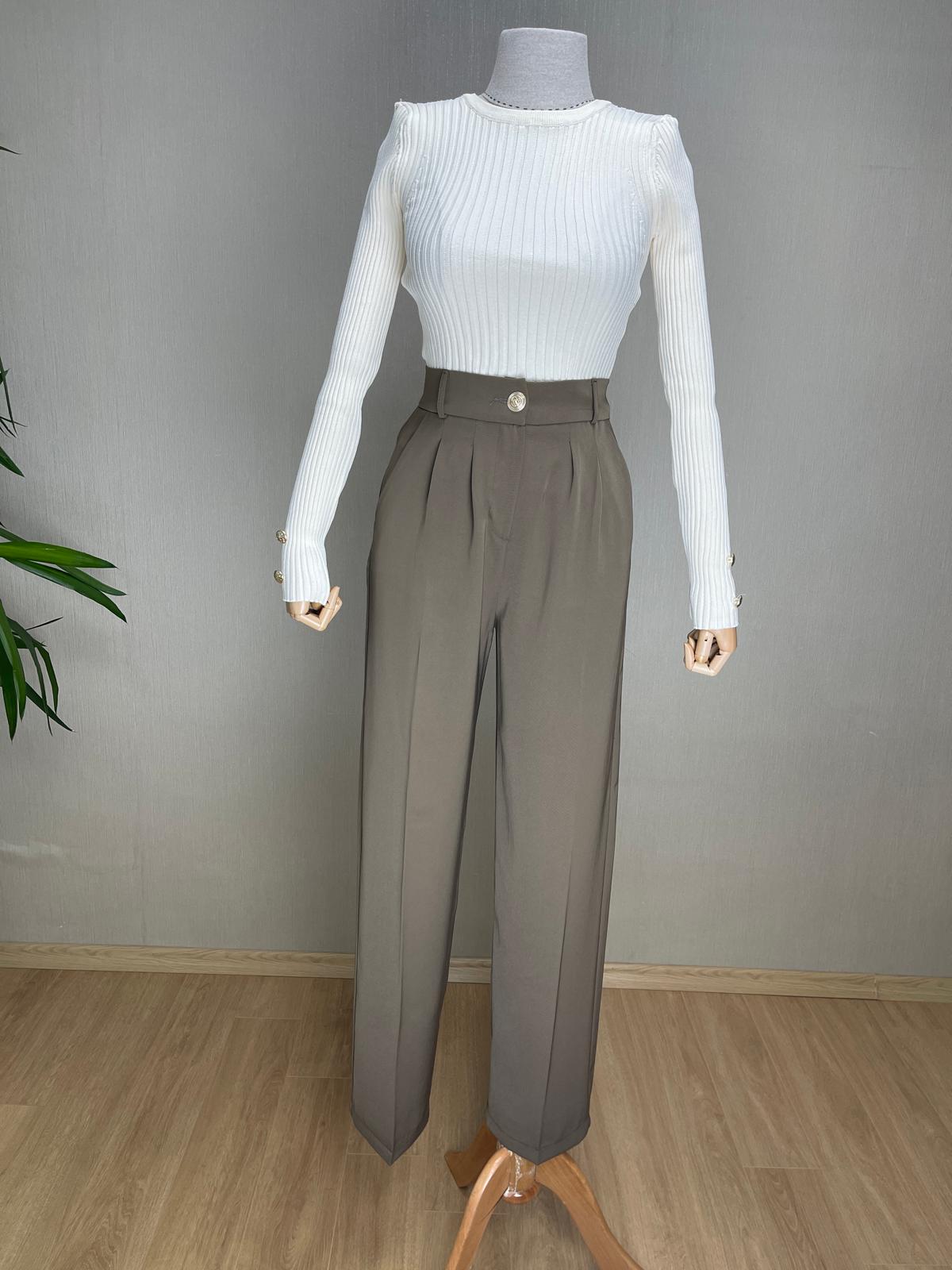 Nötr tonların gücünü yansıtan bu pantolon, hem ofis hem özel gün kombinlerinizde size eşlik edecek. Minimal tasarımı ve kaliteli kumaşıyla, uzun ömürlü bir kullanım sunuyor.