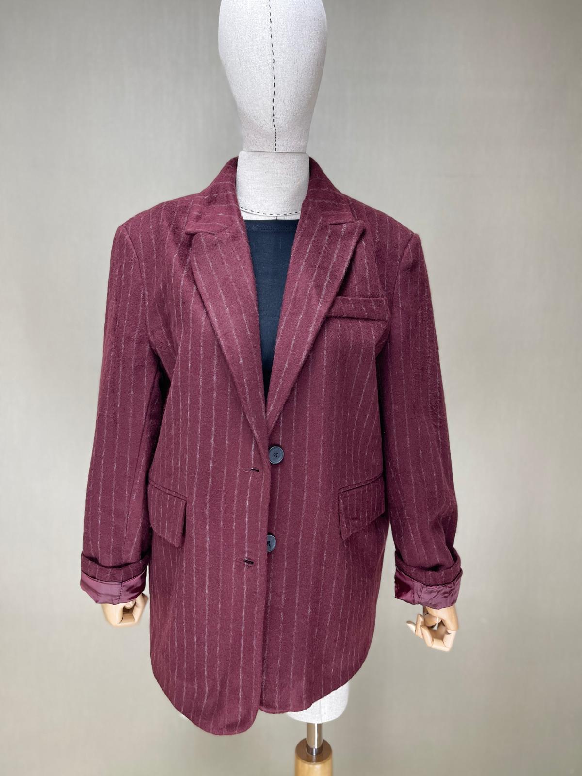 Retro Zarafet: Bordo Çizgili Boyfriend Blazer | Modern Ofis Şıklığı