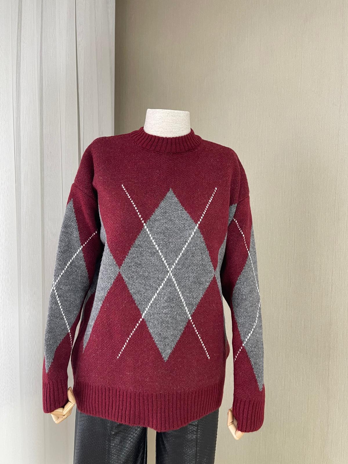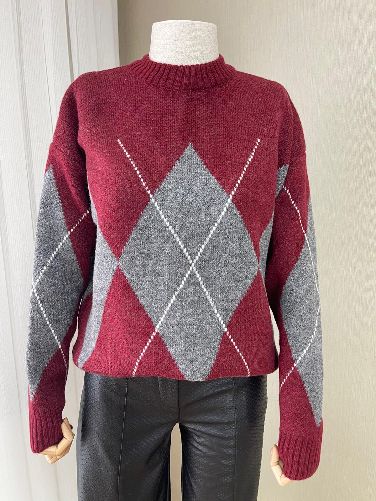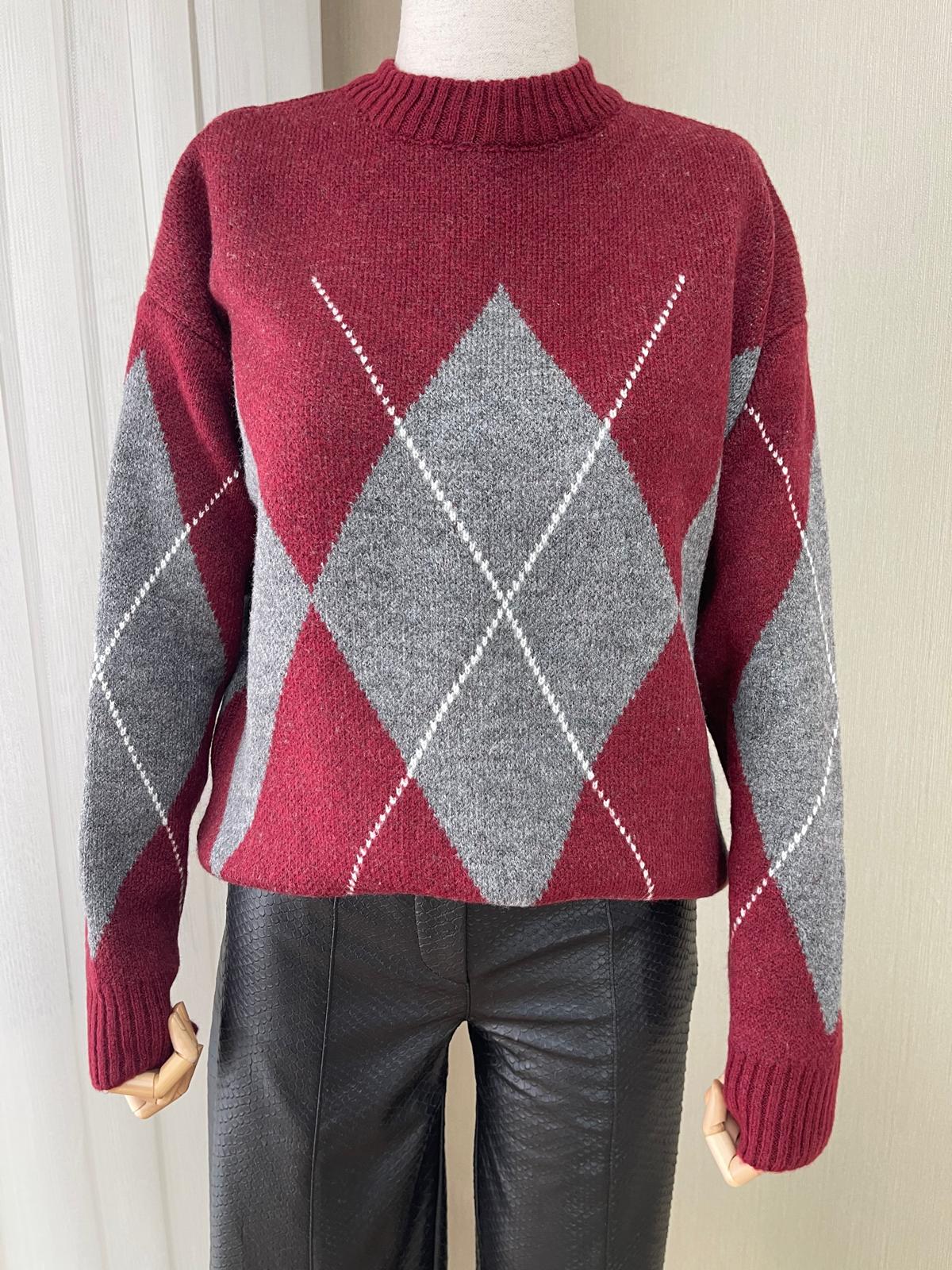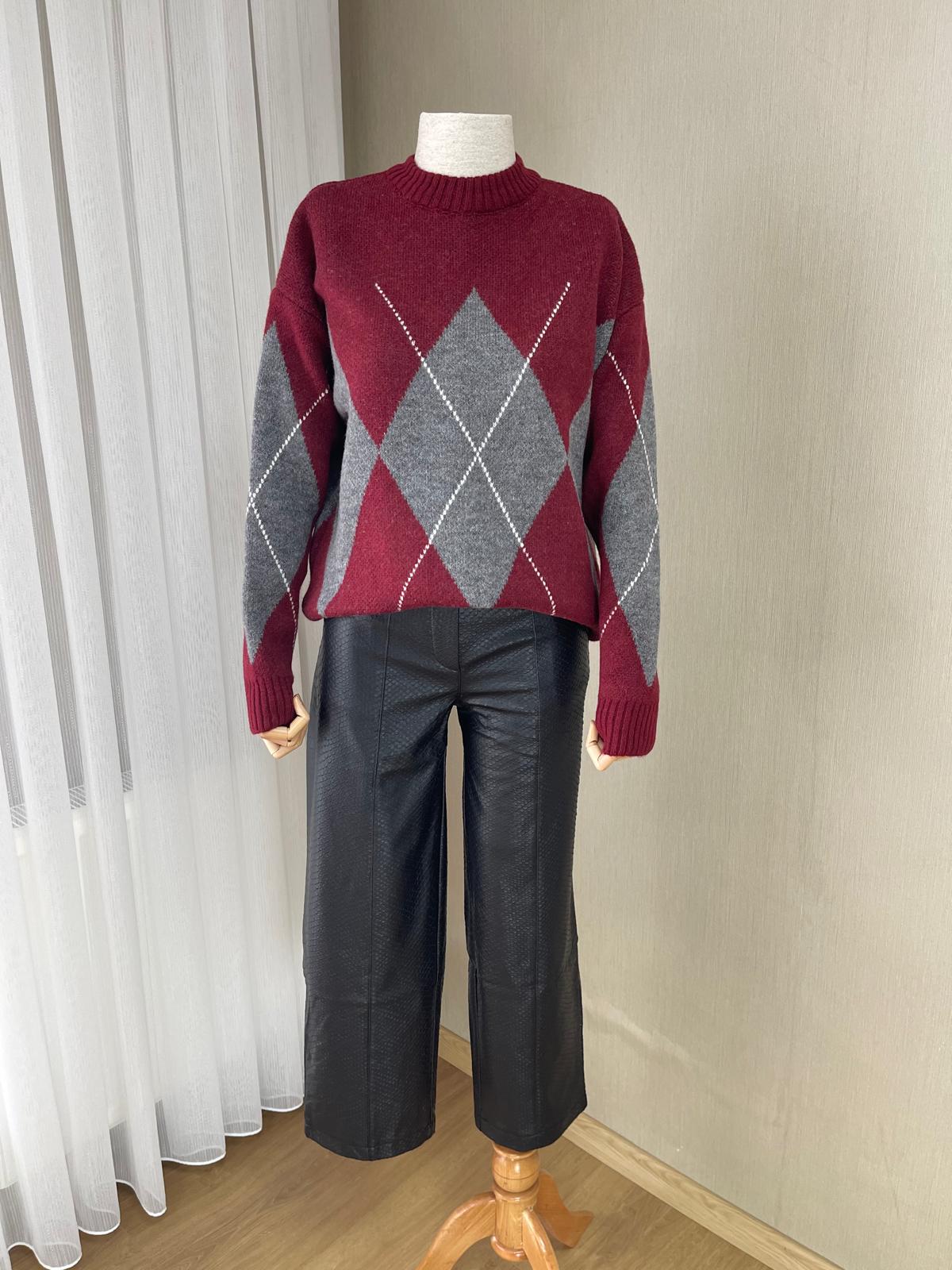 Klasik ve modern çizgileri harmanlayan kadın triko kazak, gardırobunuzun favori parçalarından biri olmaya aday. Bordo ve gri tonlarındaki ekose deseni, zamansız bir şıklık sunarken, yumuşak dokusu sayesinde gün boyu konfor sağlar.