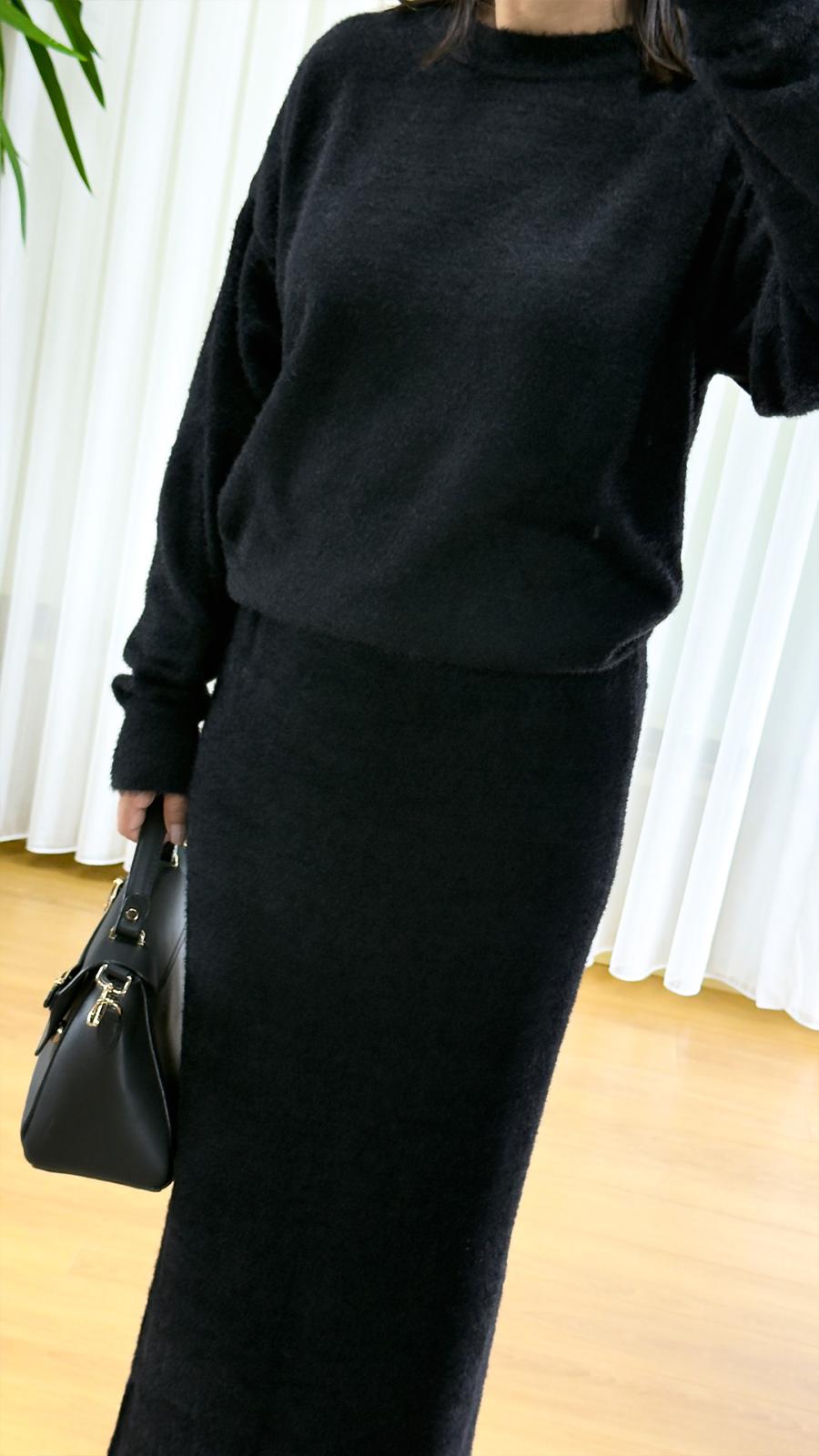 Konfor ve şıklığın mükemmel buluşması olan siyah sakallı triko takım ile hem rahat hem de zarif görünün. Peluş tüy dokusu ve yumuşacık yapısıyla gün boyu konfor sunan bu özel ikili set, kış aylarının en sıcak ve şık parçası.