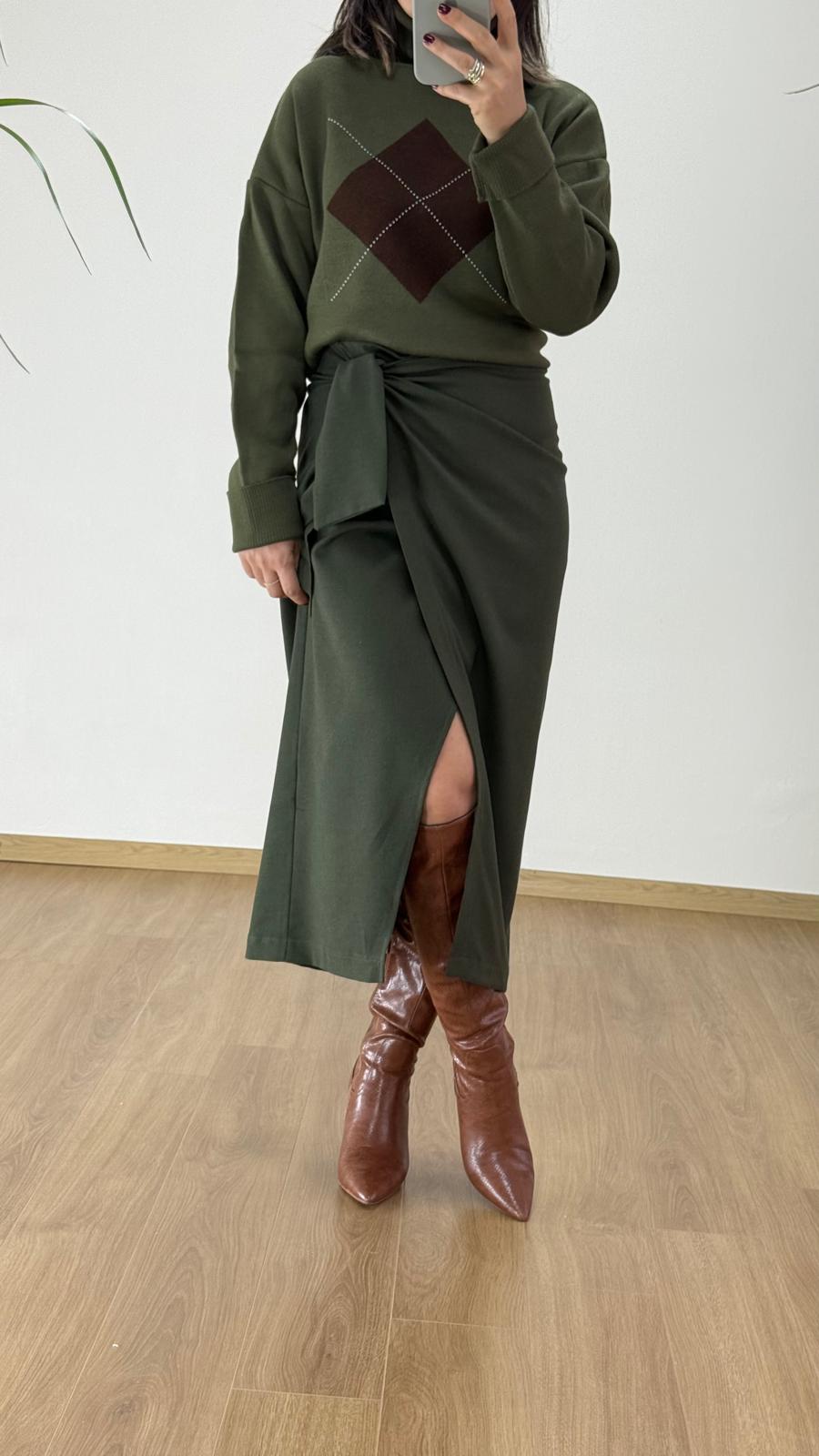 Yeşil Pareo Etek - Bağlamalı Midi Boy Bayan Etek