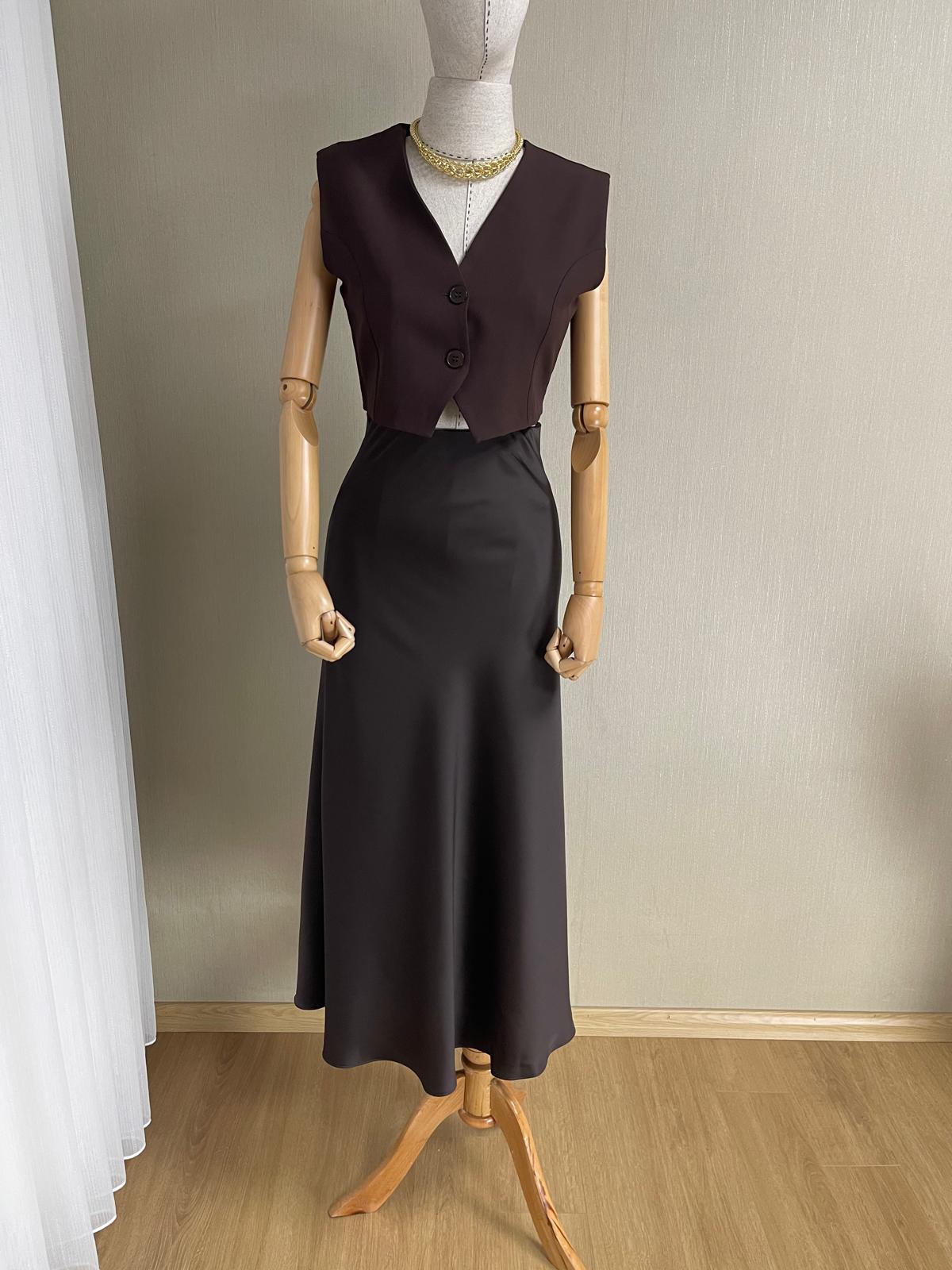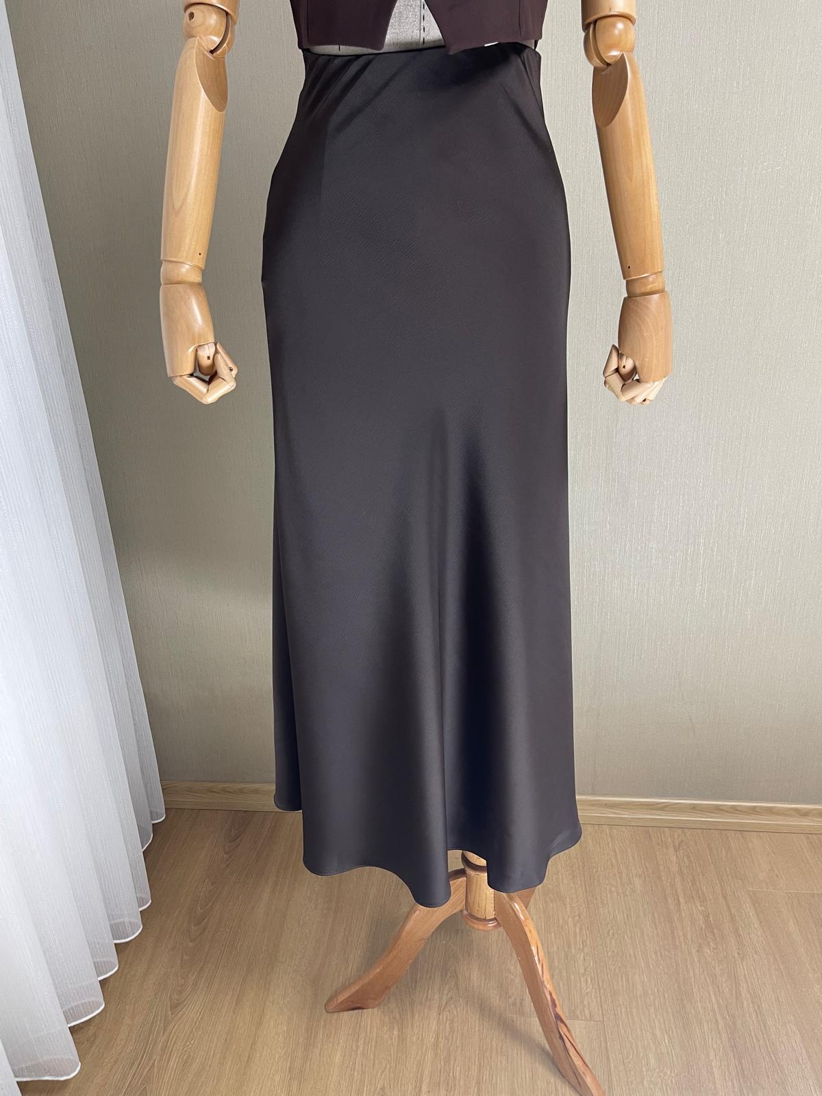 Zarafetin Simgesi: Acı Kahve Saten Maksi Boy Etek | Işıltılı Akışkan Tasarım