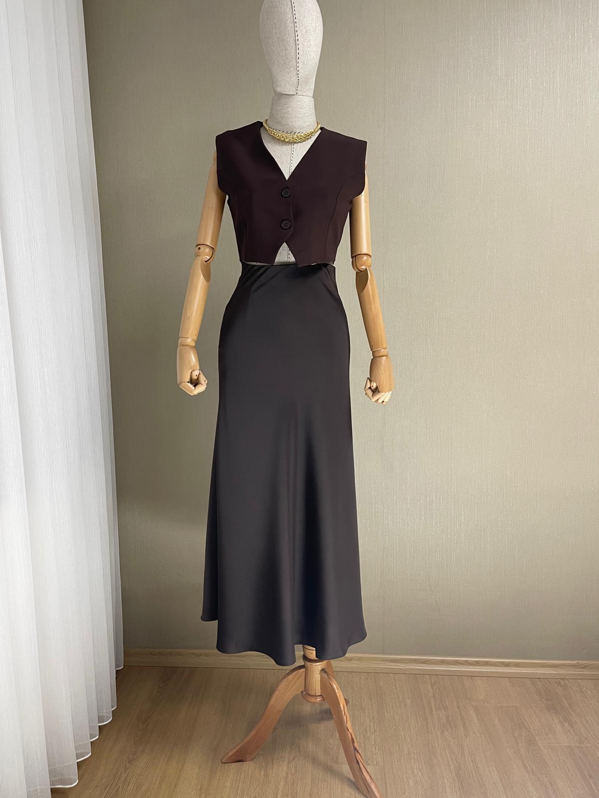 A kesim silueti ve akışkan saten kumaşıyla vücudu nazikçe saran bu etek, bel kısmındaki minimal detaylarıyla şık bir görünüm sunuyor. Midi boyu ile hem modern hem de zarif bir duruş sergilerken, her adımda satenin ışıltısı size eşlik ediyor.