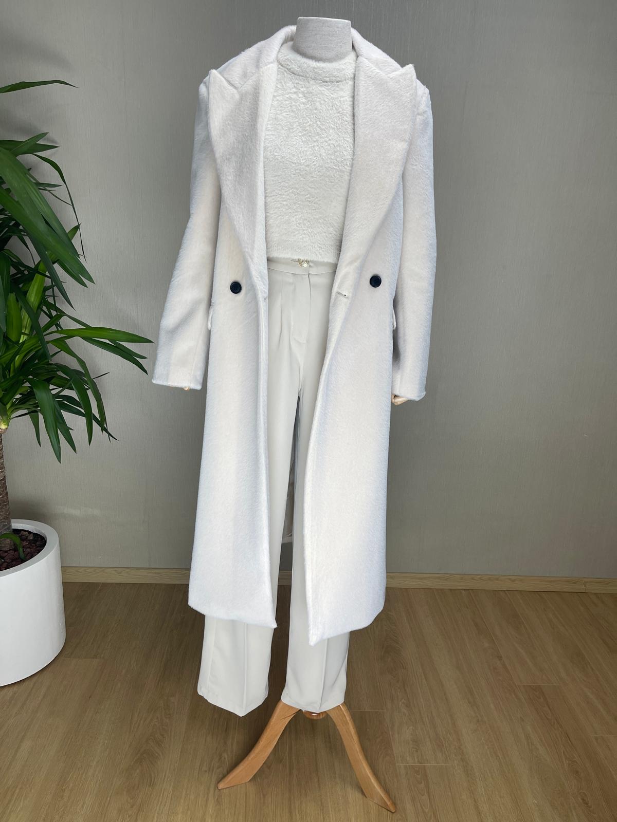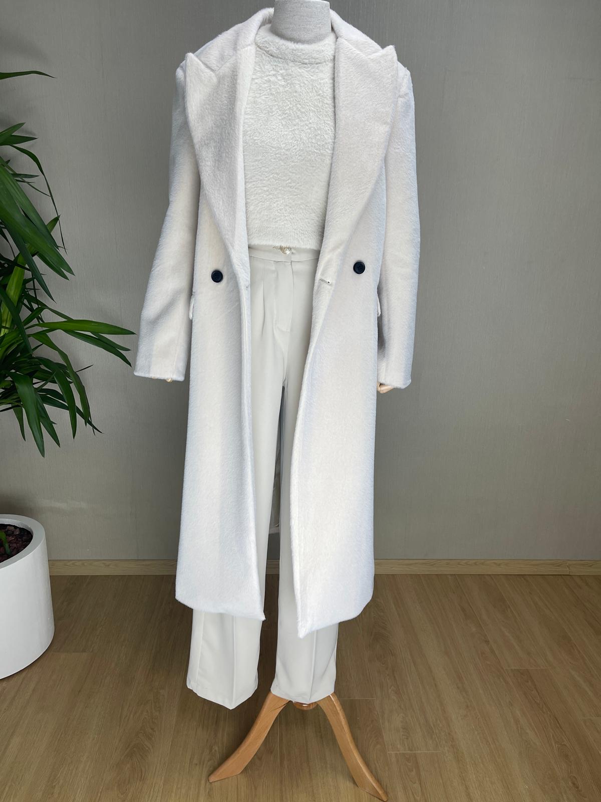 Beyazın saf güzelliğini yansıtan bu uzun kaban, kış aylarında her kombinizi bir üst seviyeye taşıyacak. Minimal tasarımı ve lüks dokusuyla, hem günlük hem özel davet kombinlerinizde size eşlik edecek mükemmel bir parça!